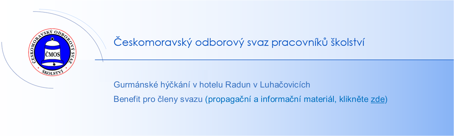 V příloze tohoto textu naleznete nabídku pobytů v hotelu Radun v Luhačovicích pro termíny pobytů (neděle - pátek) v období od 2. 2. do 15. 3. 2026. V rámci benefitů pro členy ČMOS PŠ se jedná o zvýhodněnou nabídku.